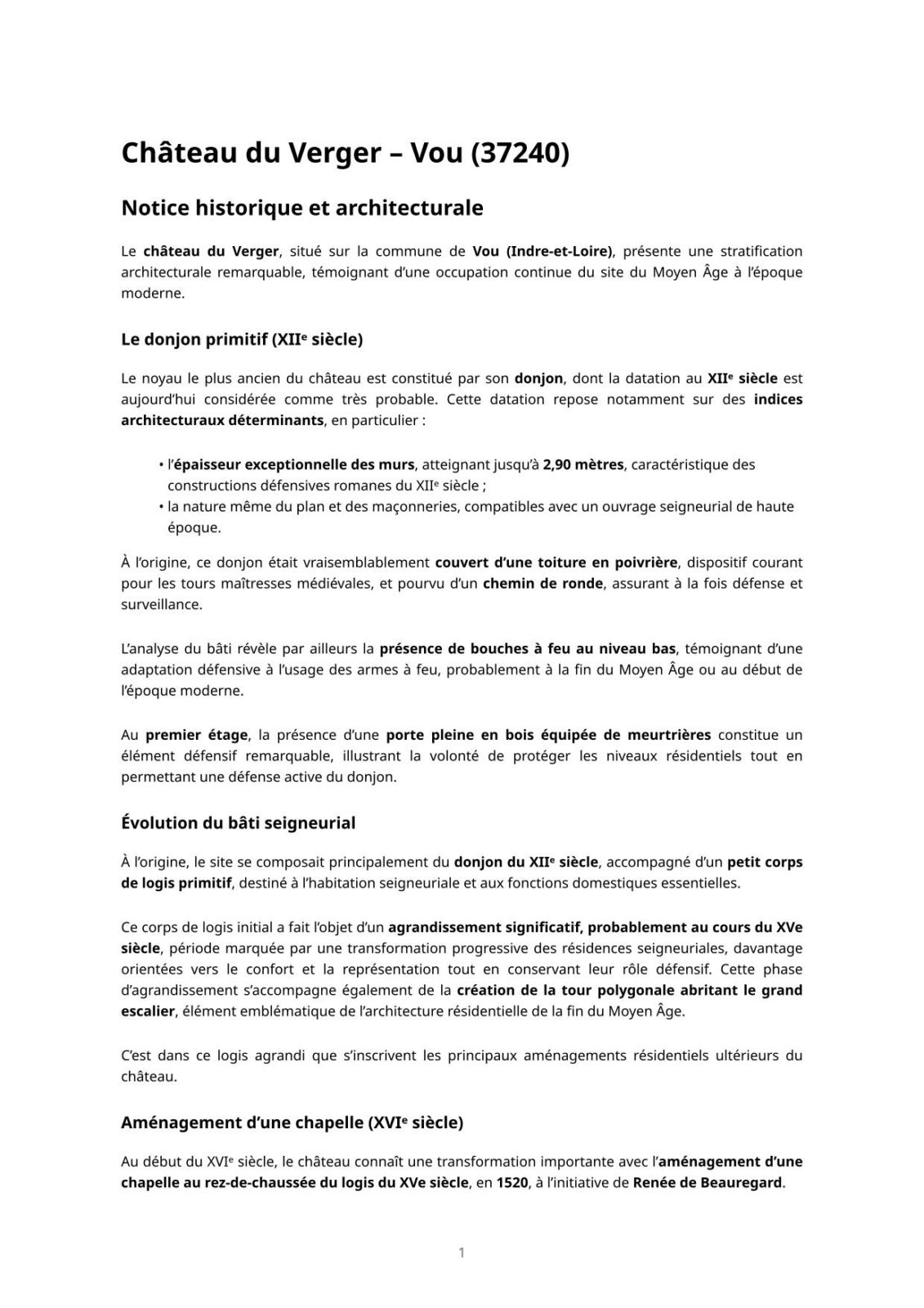 Notice Historique – Château Du Verger XXL